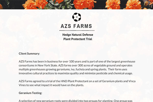 Technical Reports, Case Studies, Plant Trials, Lab Reports and Certifications have been conducted and secured under various alias brand names (e.g. FENZ, AMP, Hedge Defense).  CerarMist is a proprietary name that creates a “brand” synonymous with the characteristics and properties of the suite of products that were branded and utilized for the testing, trials and ultimate certifications listed below.